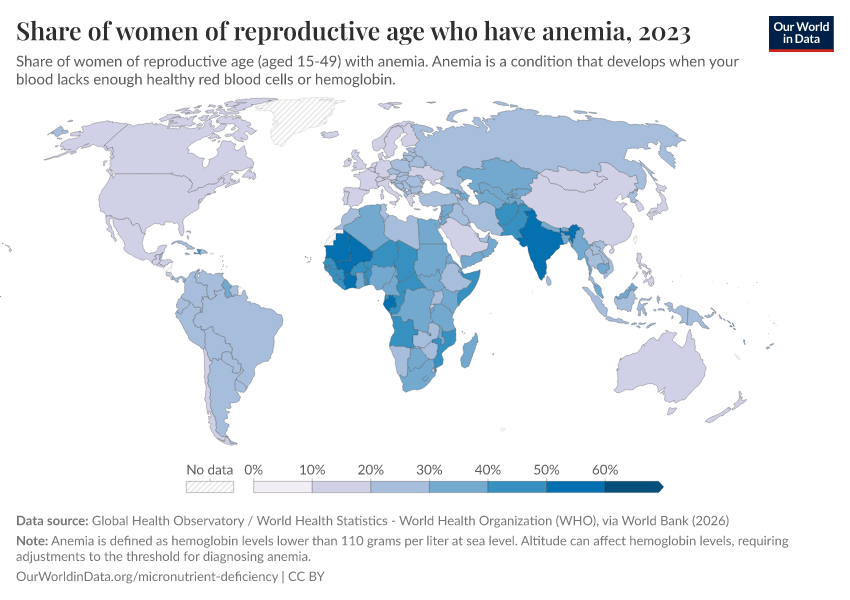Hannah Ritchie (2024) - “Billions of people suffer from anemia, but there are cheap ways to reduce this” Published online at OurWorldinData.org. Retrieved from: 'https://data-diet-americans.owid.pages.dev:8789/20260202-181317/billions-people-suffer-anemia-cheap-ways-reduce.html' [Online Resource] (archived on February 2, 2026).BibTeX citation