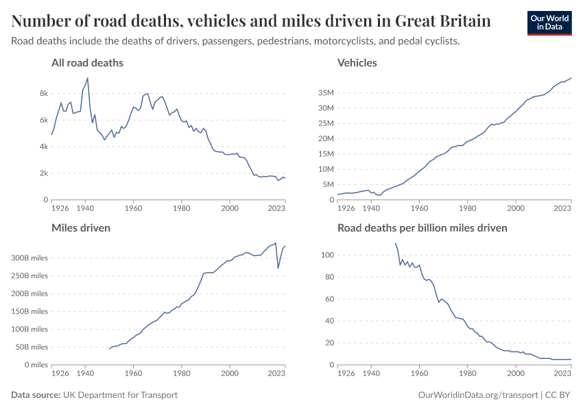 Hannah Ritchie (2025) - “How Britain built some of the world’s safest roads” Published online at OurWorldinData.org. Retrieved from: 'https://data-diet-americans.owid.pages.dev:8789/20260211-174736/britain-safest-roads-history.html' [Online Resource] (archived on February 11, 2026).BibTeX citation
