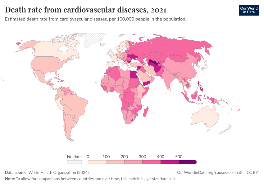 On this page, you will find global data on cardiovascular diseases, their risk factors and treatments, and their trends over time.