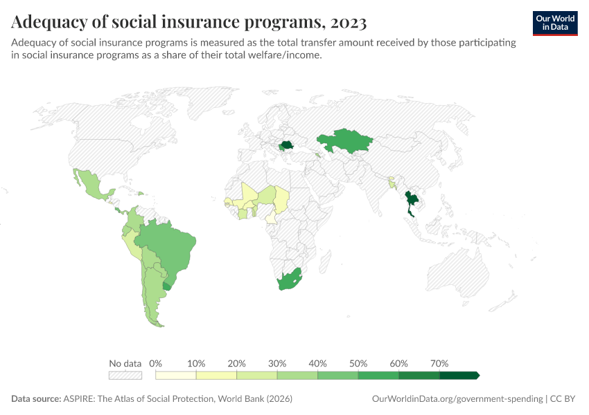 “Data Page: Adequacy of social insurance programs”. Our World in Data (2026). Data adapted from ASPIRE: The Atlas of Social Protection, World Bank. Retrieved from https://data-diet-americans.owid.pages.dev:8789/20260202-181317/grapher/adequacy-of-social-insurance-programs.html [online resource] (archived on February 2, 2026).How to cite this data