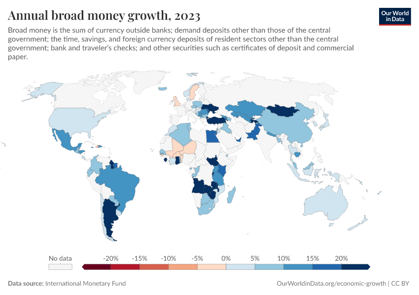 “Data Page: Annual broad money growth”. Our World in Data (2026). Data adapted from International Monetary Fund. Retrieved from https://data-diet-americans.owid.pages.dev:8789/20251120-211749/grapher/annual-broad-money-growth.html [online resource] (archived on November 20, 2025).How to cite this data