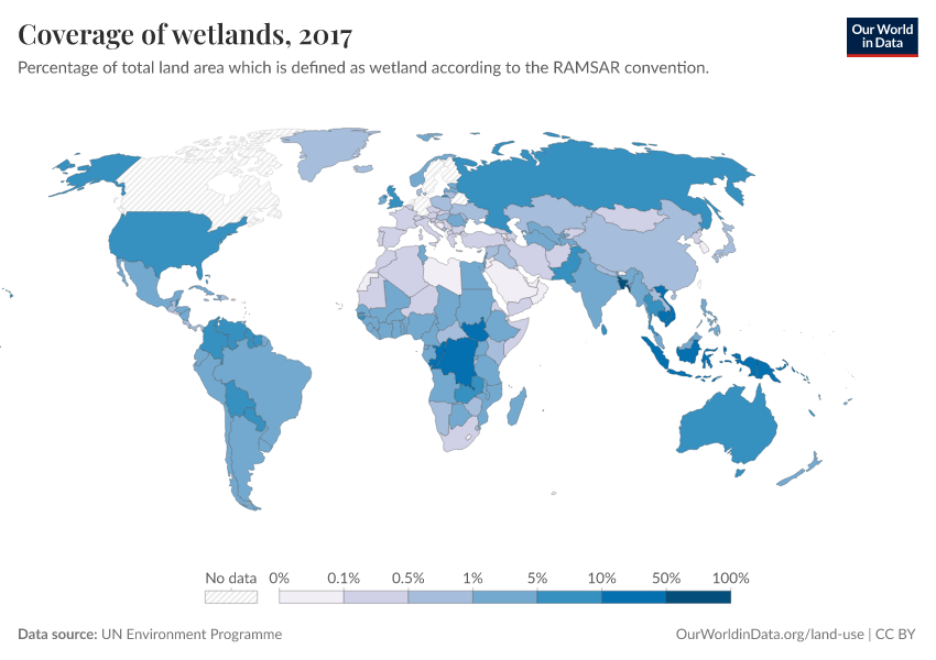 “Data Page: Coverage of wetlands”. Our World in Data (2026). Data adapted from UN Environment Programme. Retrieved from https://data-diet-americans.owid.pages.dev:8789/20260130-180113/grapher/coverage-of-wetlands.html [online resource] (archived on January 30, 2026).How to cite this data