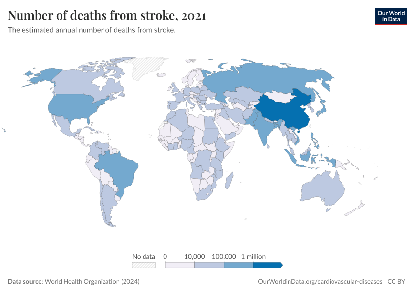 World Health Organization (2024) – with major processing by Our World in Data. “Number of deaths from stroke” [dataset]. World Health Organization, “Global Health Estimates” [original data]. Retrieved February 28, 2026 from https://data-diet-americans.owid.pages.dev:8789/20250909-093708/grapher/deaths-from-strokes-ghe.html (archived on September 9, 2025).