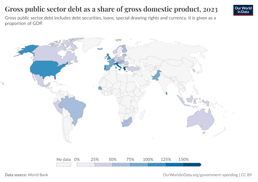 “Data Page: Gross public sector debt as a share of gross domestic product”. Our World in Data (2026). Data adapted from World Bank. Retrieved from https://data-diet-americans.owid.pages.dev:8789/20251120-211749/grapher/gross-public-sector-debt-as-a-proportion-of-gdp.html [online resource] (archived on November 20, 2025).How to cite this data