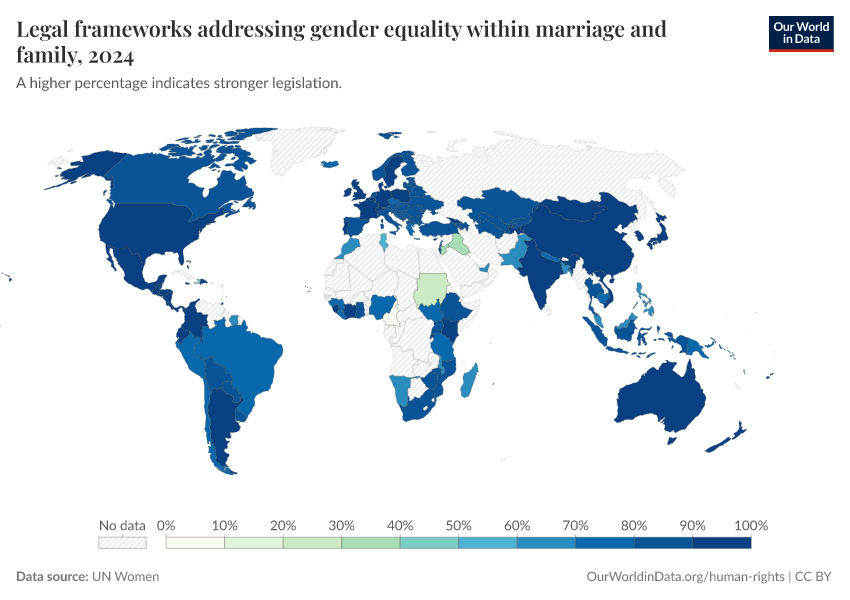 “Data Page: Legal frameworks addressing gender equality within marriage and family”. Our World in Data (2026). Data adapted from UN Women. Retrieved from https://data-diet-americans.owid.pages.dev:8789/20260130-180113/grapher/legal-frameworks-gender-equality-within-marriage-and-family.html [online resource] (archived on January 30, 2026).How to cite this data