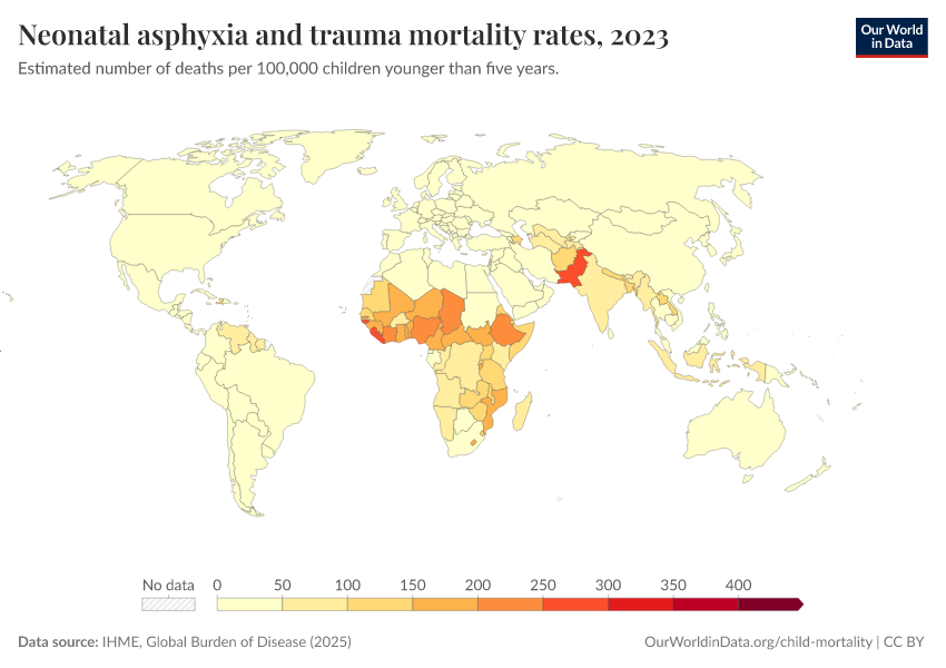 IHME, Global Burden of Disease (2025) – with major processing by Our World in Data. “Neonatal asphyxia and trauma mortality rates” [dataset]. IHME, Global Burden of Disease, “Global Burden of Disease - Deaths” [original data]. Retrieved February 28, 2026 from https://data-diet-americans.owid.pages.dev:8789/20260211-174736/grapher/mortality-neonatal-asphyxia-and-trauma.html (archived on February 11, 2026).