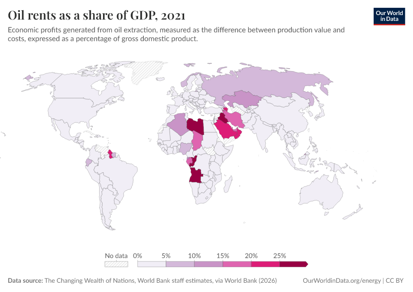 “Data Page: Oil rents as a share of GDP”. Our World in Data (2026). Data adapted from The Changing Wealth of Nations, World Bank staff estimates, via World Bank. Retrieved from https://data-diet-americans.owid.pages.dev:8789/20260202-181317/grapher/oil-rents-as-a-share-of-gdp.html [online resource] (archived on February 2, 2026).How to cite this data