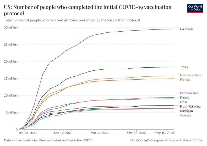 Centers for Disease Control and Prevention (2023) – processed by Our World in Data. “US: Number of people who completed the initial COVID-19 vaccination protocol” [dataset]. Centers for Disease Control and Prevention, “COVID-19, Vaccinations (United States)” [original data]. Retrieved February 28, 2026 from https://data-diet-americans.owid.pages.dev:8789/20250909-093708/grapher/us-covid-number-fully-vaccinated.html (archived on September 9, 2025).