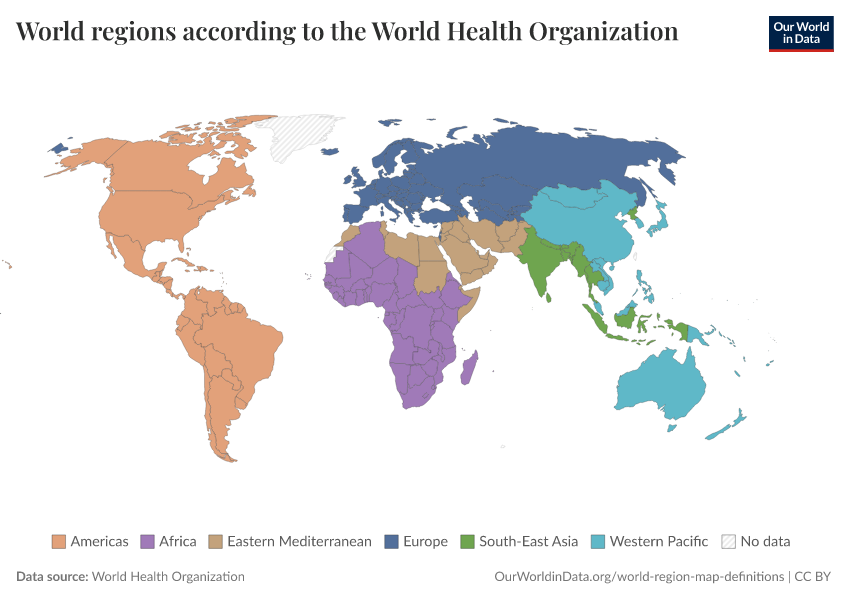 “Data Page: World regions according to the World Health Organization”. Our World in Data (2026). Data adapted from World Health Organization. Retrieved from https://data-diet-americans.owid.pages.dev:8789/20251112-060124/grapher/who-regions.html [online resource] (archived on November 12, 2025).How to cite this data