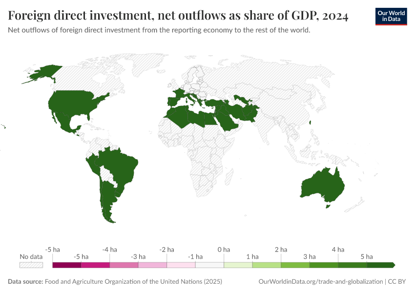 Data for this indicator is shown in the interactive visualization as foreign direct investment outflows and inflows as a share of GDP.