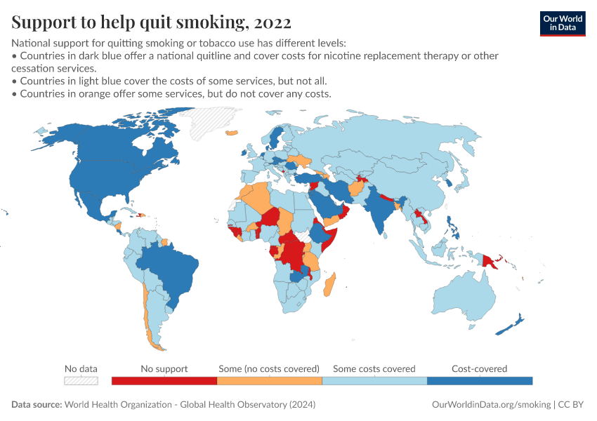 Globally, smoking-related death rates have fallen.