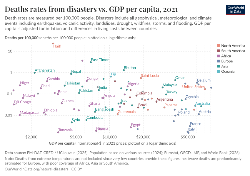 Hannah Ritchie (2024) - “The world has become more resilient to disasters, but investment is needed to save more lives” Published online at OurWorldinData.org. Retrieved from: 'https://data-diet-americans.owid.pages.dev:8789/20260202-181317/the-world-has-become-more-resilient-to-disasters-but-investment-is-needed-to-save-more-lives.html' [Online Resource] (archived on February 2, 2026).BibTeX citation